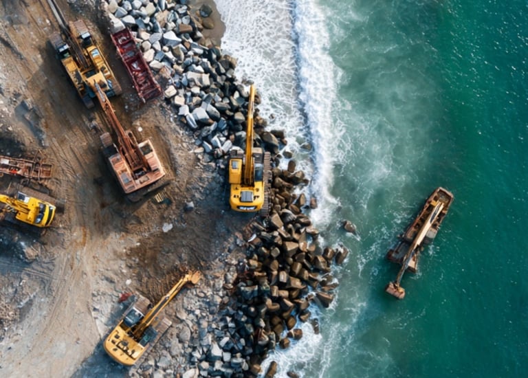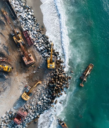 Protegemos la costa con rompeolas sólidos y efectivos.